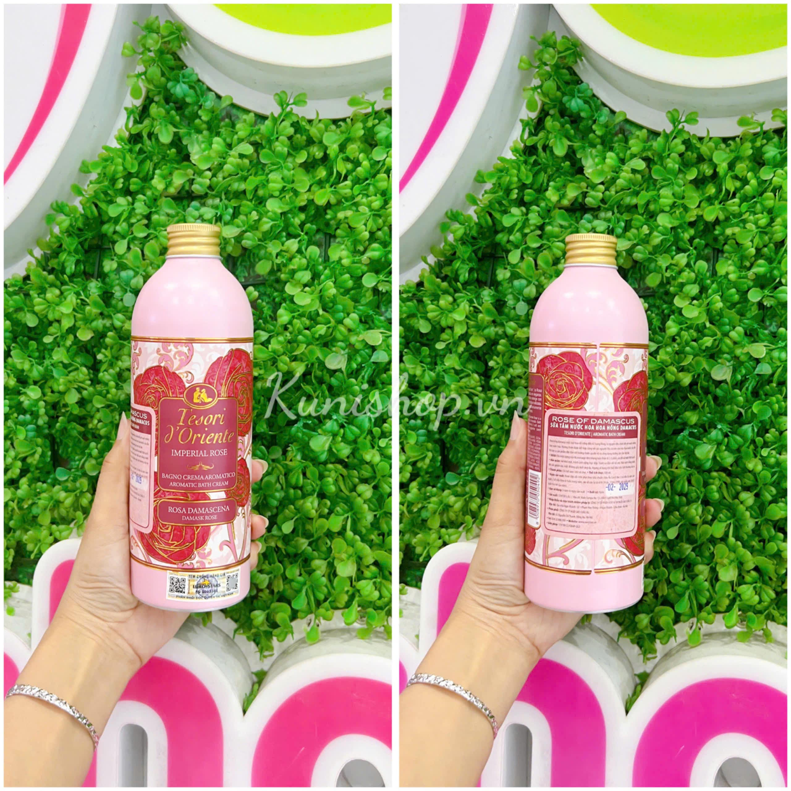 Sữa tắm nước hoa hương hoa hồng Tesori d'Oriente - Imperial Rose Aromatic Bath Cream với chiết xuất hoa hồng Damask có công dụng đặc trưng là dưỡng ẩm tối ưu, giúp làm mềm da, tăng độ mịn mướt và đàn hồi cho da, đồng thời cung cấp hương thơm nhẹ nhàng, ngọt ngào đến từ hoa hồng.