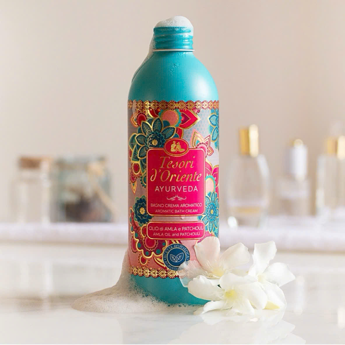 Sữa tắm hương nước hoa Tesori d’Oriente - Ayurveda được sinh ra để phục hồi cơ thể, tâm trí và tái tạo sự hài hòa từ bên trong từ những thành phần và hương liệu của lịch sử ngàn năm: Tinh dầu Alma – Dầu vừng – Lô hội – Cây hắc tùng – Cúc tâm tư. Ayurveda làm sạch dịu nhẹ, giữ ẩm, tái tạo làn da cùng những tầng hương độc đáo để mang lại cảm giác vui vẻ, hạnh phúc lâu dài để tái tạo năng lượng, làm mới cơ thể và tạo sự cân bằng tuyệt diệu từ bên trong.