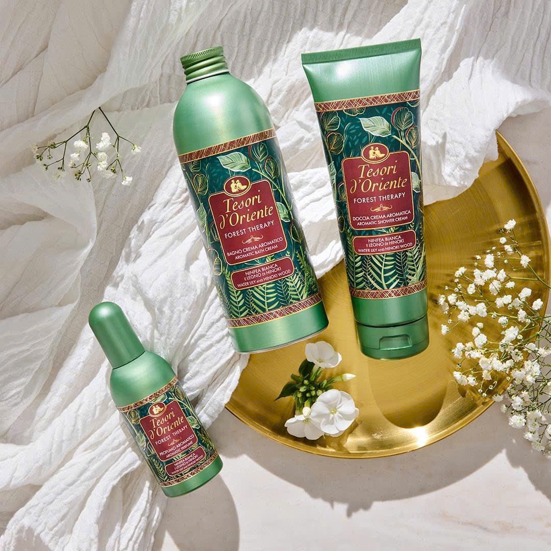 Sữa tắm hương nước hoa Tesori d’Oriente - Forest Therapy: Forest Bathing – Tắm rừng, được dựa trên một tập tục của Nhật Bản gọi là “shinrin-yoku,” có nghĩa là “đắm chìm trong bầu không khí của rừng” là một nghi thức chăm sóc sức khỏe của người Nhật bao gồm việc ngâm mình trong rừng để tái sinh để hấp thụ tất cả lợi ích trong một môi trường trong lành và không bị ô nhiễm.Người ta đã chứng minh rằng dành thời gian ở ngoài trời, trong rừng và rừng rậm giúp đánh thức các giác quan của chúng ta, loại bỏ căng thẳng và tăng cường hệ thống miễn dịch.