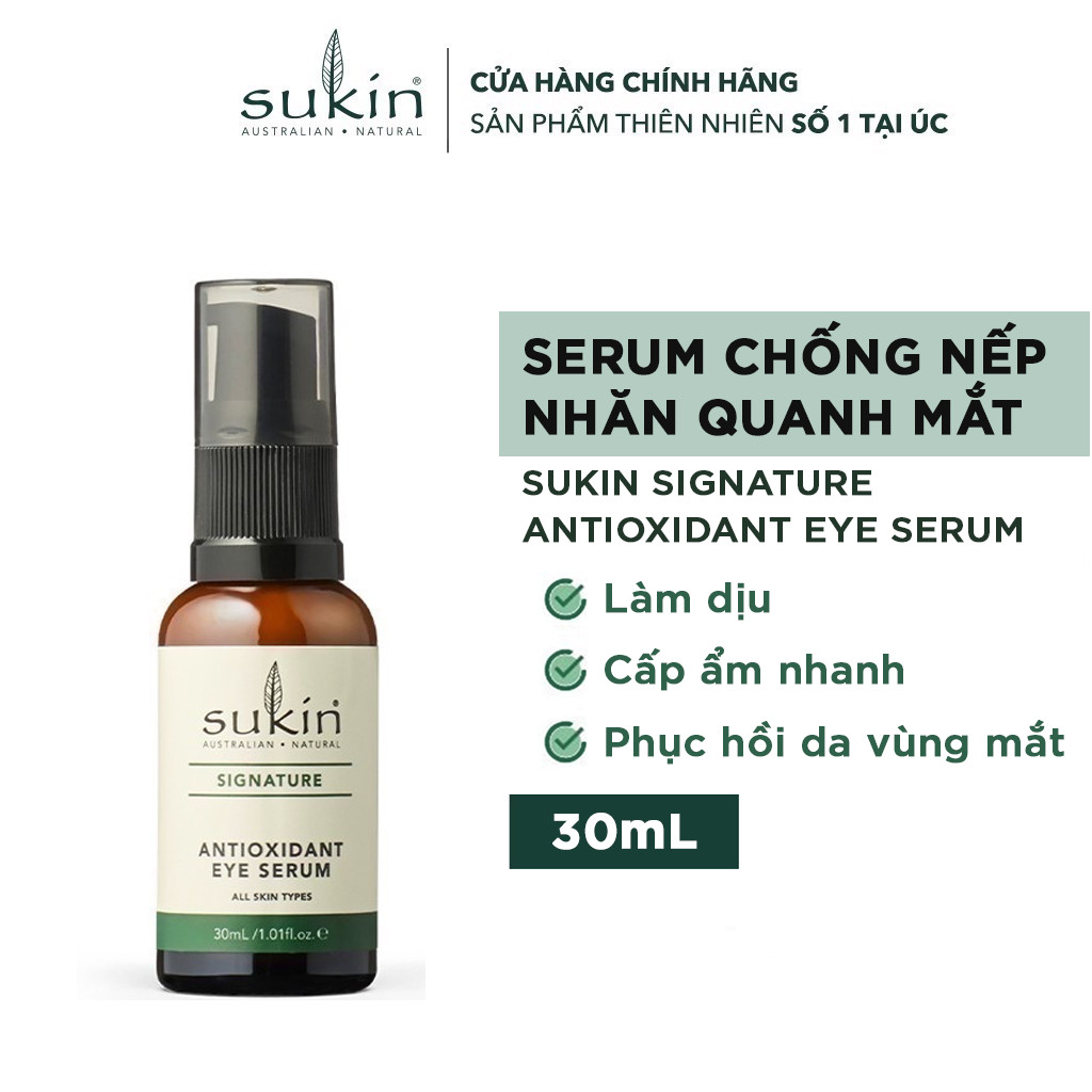 Serum chống nếp nhăn vùng mắt Sukin là sản phẩm kem dưỡng mắt tốt nhất với các thành phần thảo dược hoàn toàn tự nhiên và được chứng minh lâm sàng là hoàn toàn an toàn cho người sử dụng trong thời gian dài. Thích hợp cho các loại da, đặc biệt là da khô và da nhạy cảm
