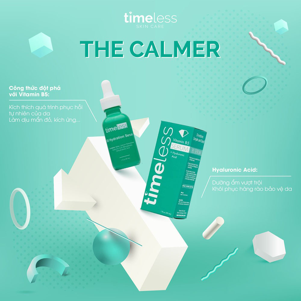 Có thể nhiều bạn cho rằng mình không cần serum, nhưng nếu bạn đặt toàn bộ kỳ vọng vào một lọ kem dưỡng thì chắc chắn da bạn sẽ không bao giờ đạt được diện mạo như mong muốn. Bởi vì serum là sản phẩm đặc trị chứa các tinh chất phân tử nhỏ và kết cấu lỏng sẽ thấm sâu vào da, cho hiệu quả dưỡng da nhanh chóng. Đối với những bạn da mụn chắc chắn cần một lọ serum giữ da luôn khỏe đồng thời điều chỉnh lượng dầu gây bít tắc lỗ chân lông sinh mụn, chưa kể phải có khả năng phục hồi da. Vậy thì chẳng sản phẩm nào soán nổi ngôi hoa hậu của Timeless Vitamin B5 Hydrating mà chúng ta đều đã quá quen mặt. Nếu bạn chưa biết thìTimeless là thương hiệu chuyên sản xuất serum của Mỹ và sản phẩm nổi tiếng nhất chính là chai B5 này. Chúng ta có thể sử dụng cả sáng và tối sau khi làm sạch nhé.