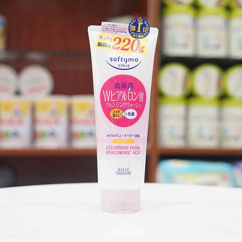 Tiếp theo là sữa rửa mặt dưỡng ẩm Kose Softymo, thương hiệu nội địa bình dân từ Nhật Bản, với dung tích to và hiệu quả cũng to không kém. Sữa rửa mặt với Hyaluronic Acid - một chất ngậm nước, tạo bọt cực nhiều khiến chị em rất thích, nhất là các chị da khô và các cô lớn tuổi ai cũng khen khả năng giữ ẩm của sản phẩm này.