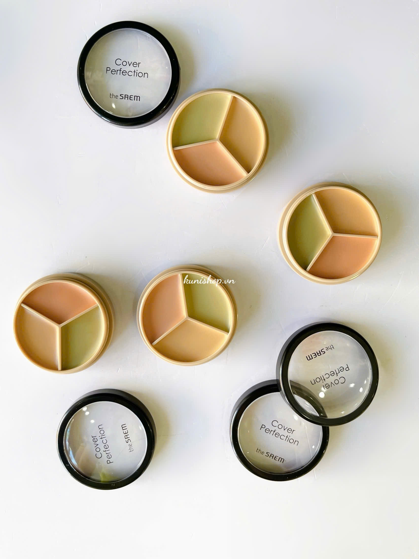 – Bảng triệt sắc Che Khuyết Điểm 3 Ô Đa Năng The Saem Cover Perfection Triple Pot có độ che phủ tốt, che phủ từ nhẹ đến cao đều được, dễ tán và mang lại hiểu quả che phủ toàn diện.