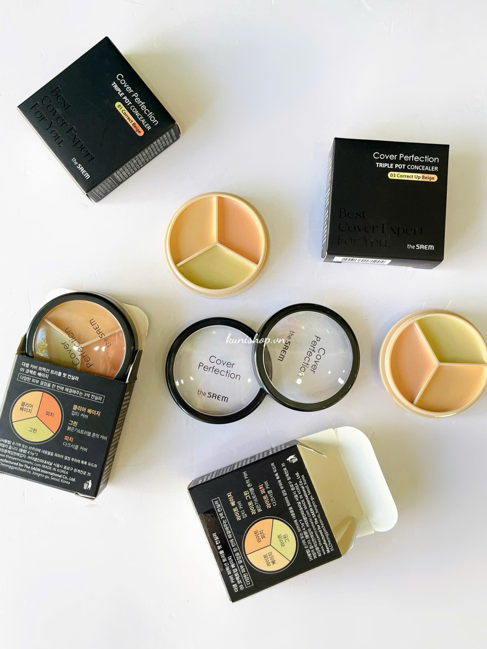 Triệt sắc The Saem Cover Perfection Triple Pot Concealer
