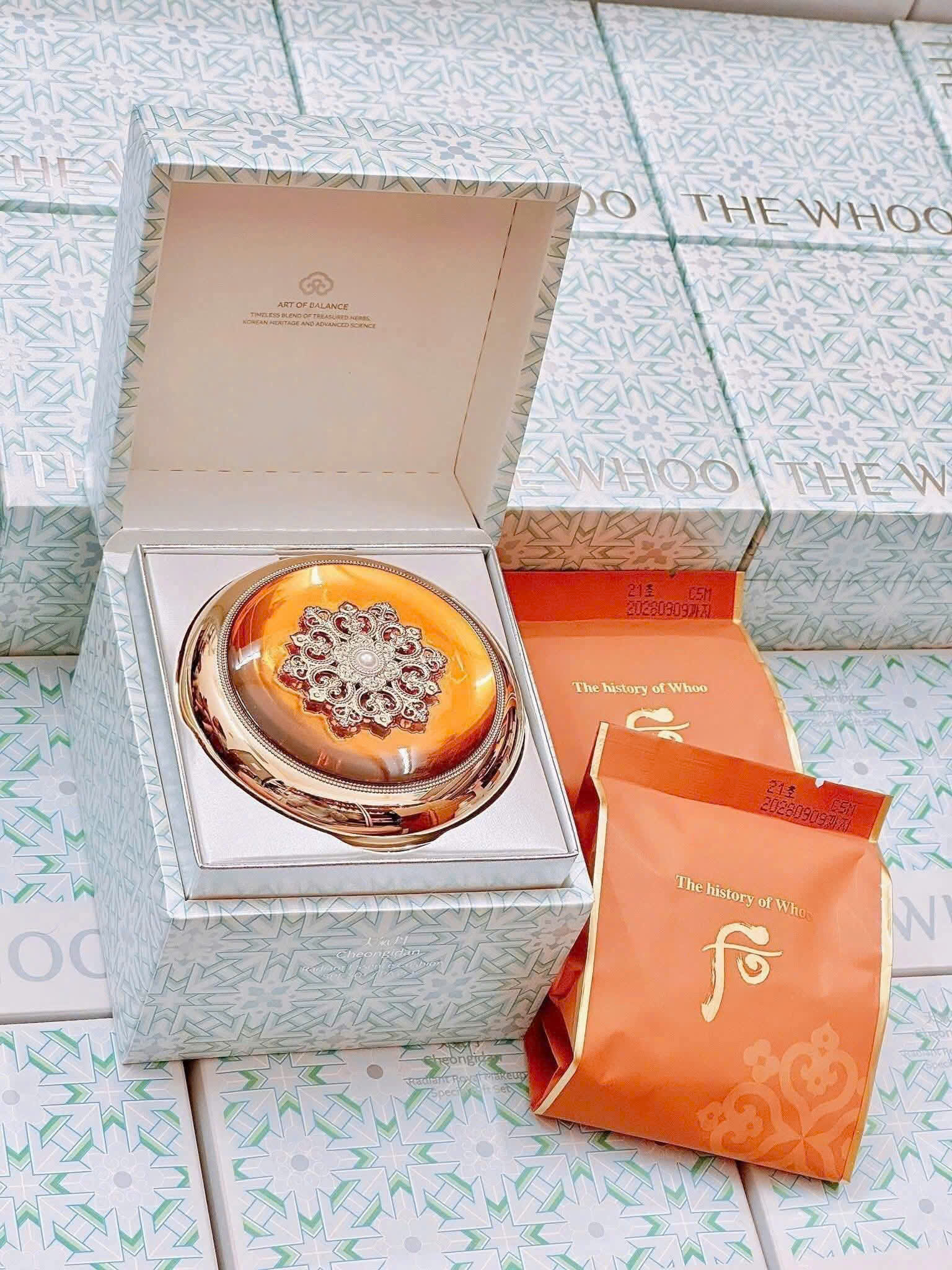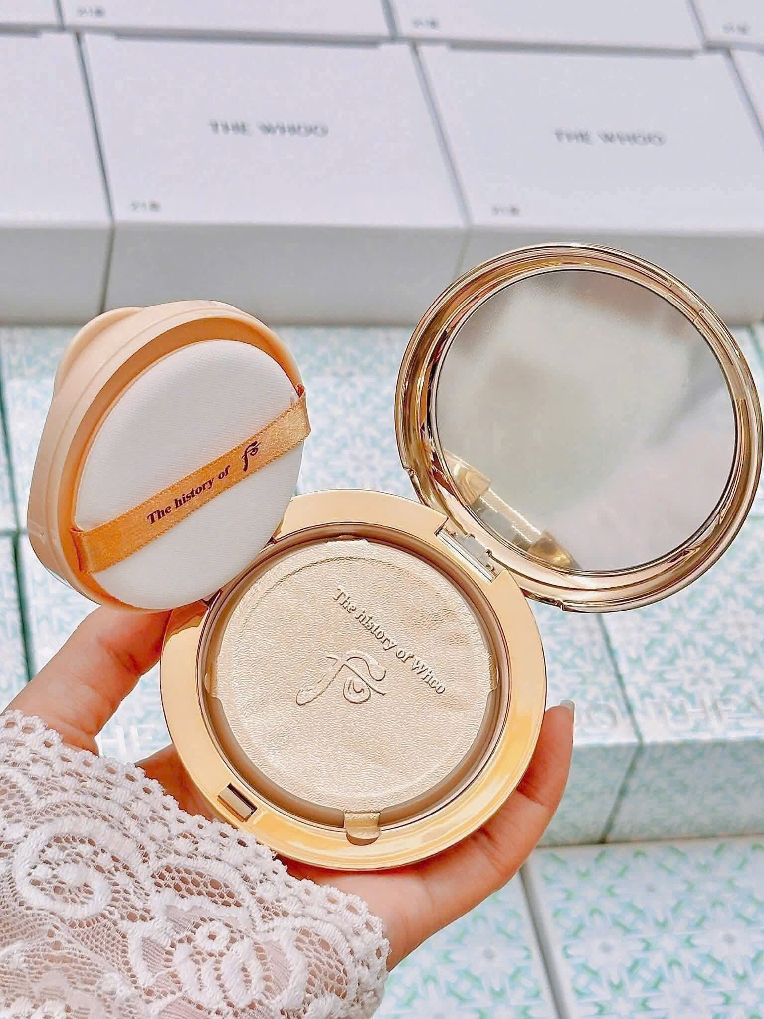 Thiết kế sang trọng và tinh tế thể hiện sự đẳng cấp của The History of Whoo. Cushion trang điểm giúp che phủ hoàn hảo các khuyết điểm trên da.