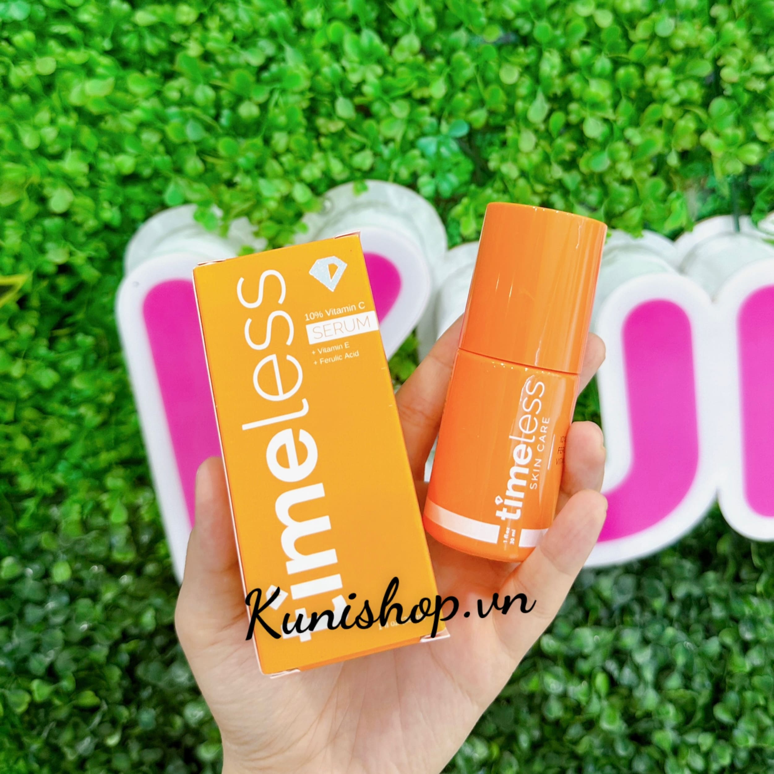 Tinh Chất Dưỡng Trắng Da Giảm Thâm Serum Timeless 10% Vitamin C + E + Ferulic Acid là tinh chất dưỡng đến từ thương hiệu Timeless Vitamin C dạng L-Ascorbic Acid với nồng độ 10% thích hợp cho người mới bắt đầu dùng Vitamin C và những ai sở hữu làn da nhạy cảm. Sản phẩm có khả năng chống oxy hóa, dưỡng sáng, giữ ẩm và ngăn ngừa các dấu hiệu lão hóa cực kỳ hiệu quả.