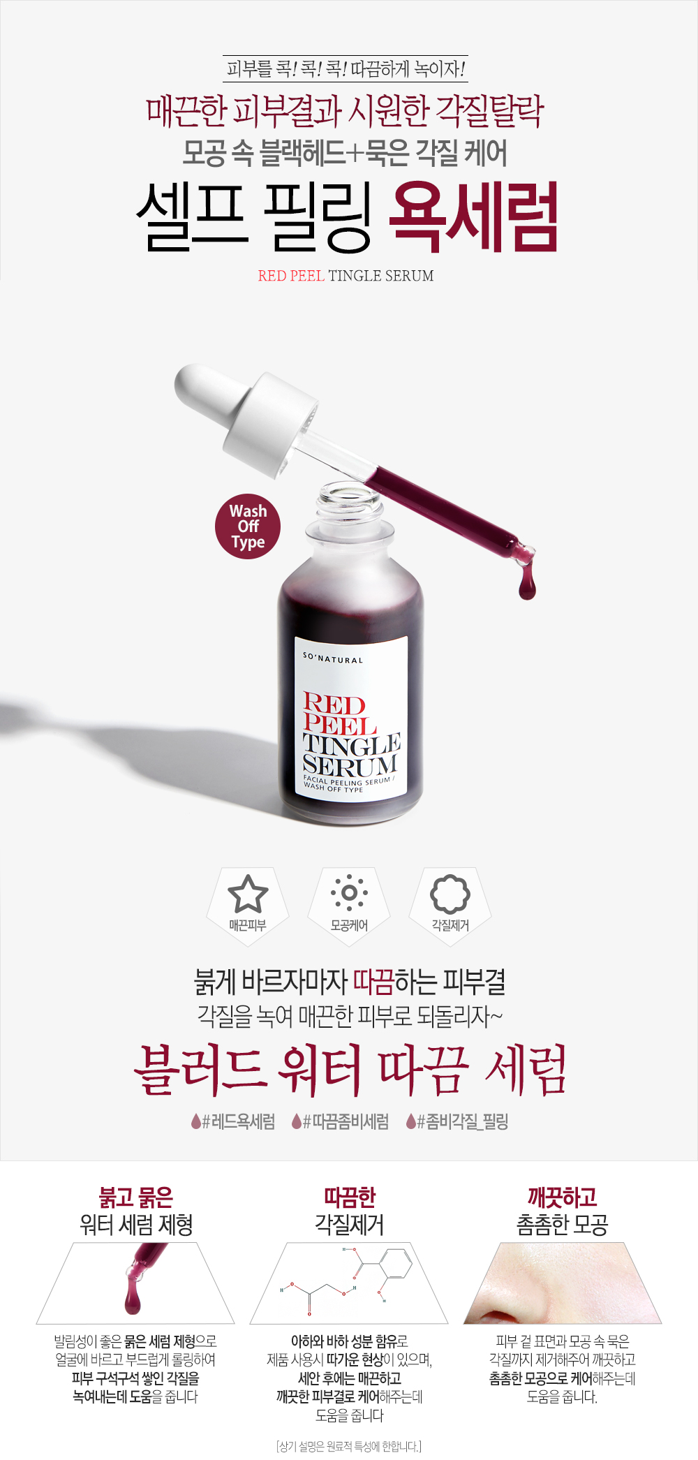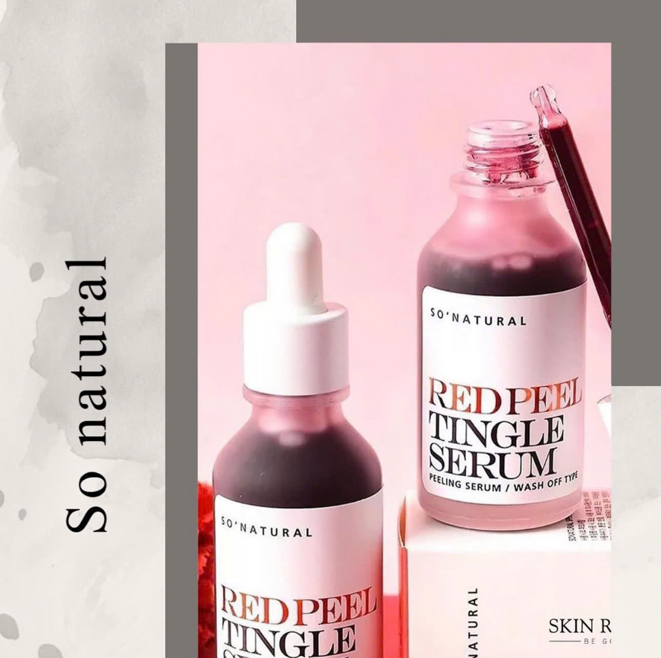 Serum tái tạo da Red Peel Tingle So Natural là loại tinh chất tẩy tế bào chết hóa học của thương hiệu So’Natural. Phương pháp tẩy tế bào chết hóa học này cho phép tinh chất len lỏi vào tận từng lỗ chân lông, đào thải tế bào chết, dầu thừa, bụi bẩn còn vương trên da, đồng thời kích thích sản sinh tế bào mới khỏe và hồng hào hơn.”