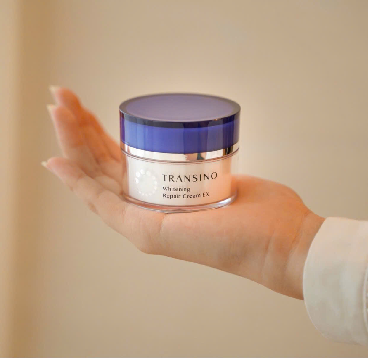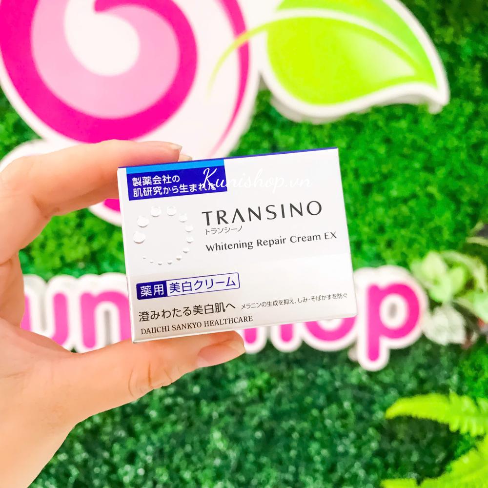 Kem dưỡng da Transino Whitening Repair Cream làm trắng da và tái tạo da bằng cách ức chế sự hình thành của hắc tố melanin và ngăn ngừa tàn nhang và các đốm đồi mồi.