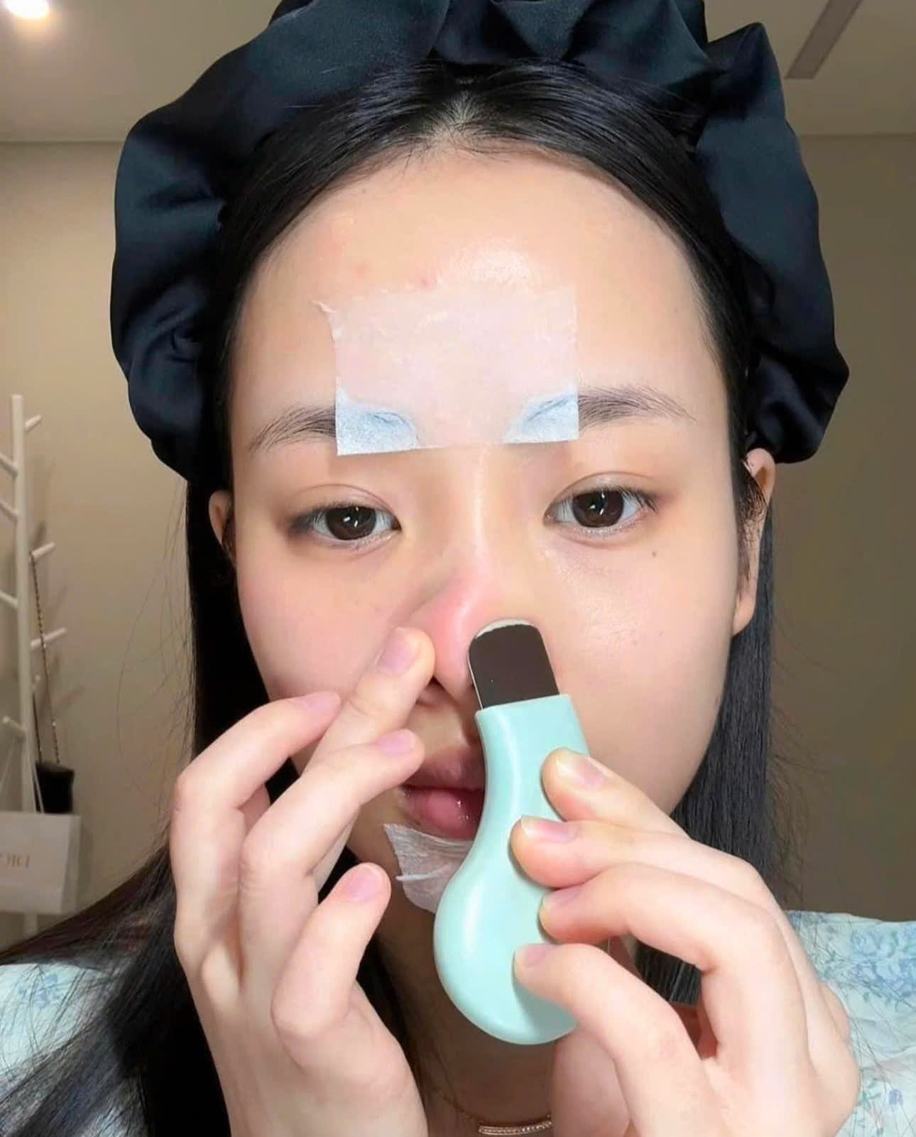 - Thấm dung dịch ra bông tẩy trang rồi ủ lên mũi khoảng 10~15phút cho mụn đầu đen được mềm ra