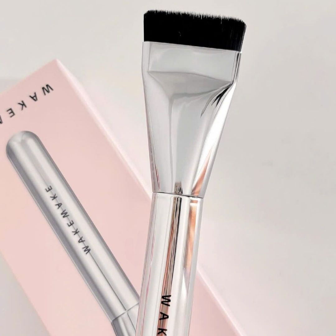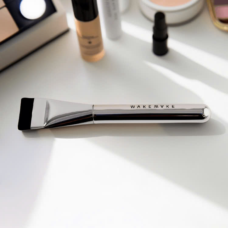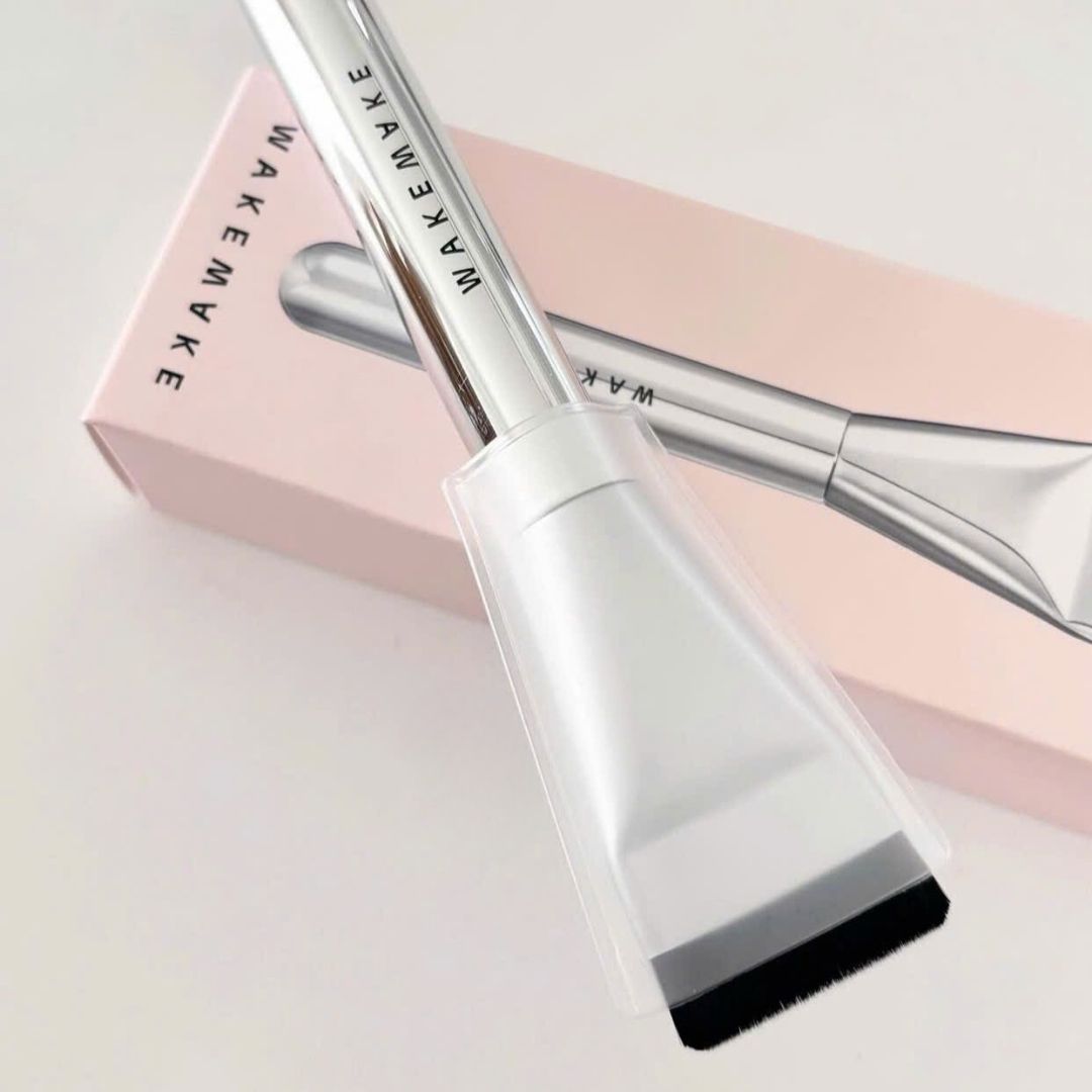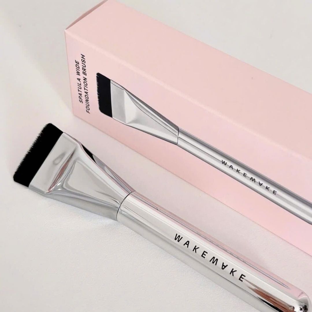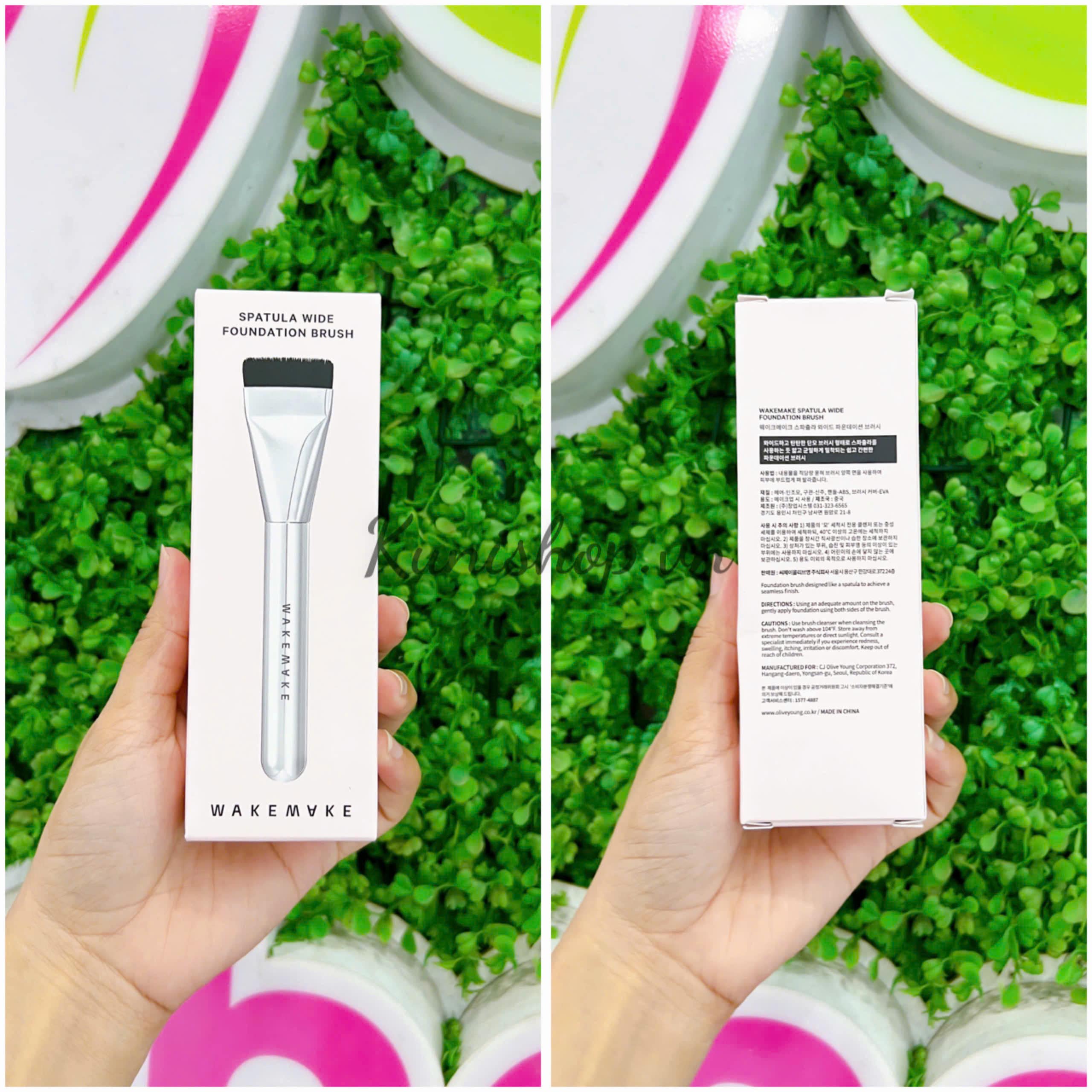 Cọ Wakemake với thiết kế ánh bạc chắc chắn cùng shape cọ dẹp ngắn có độ bó chặt giúp lấy sản phẩm lên da nhiều và dễ dàng hơn. Ngoài chức năng dàn đều nền trên da, cọ còn có thể dùng cho các sản phẩm dạng lỏng khác như kem chống nắng, kem lót... Chất lông tổng hợp hiện đang là xu thế hiện nay, bởi độ an toàn và thân thiện với môi trường, thêm vào đó là phù hợp với mọi loại da. Là sự kết hợp hoàn hảo giữa que tán kem nền spatula và cọ trang điểm được ưa chuộng với thiết kế mỏng, dẹt giúp lớp nền khi tán ra được đều, mướt và tệp lì tự nhiên trên da.