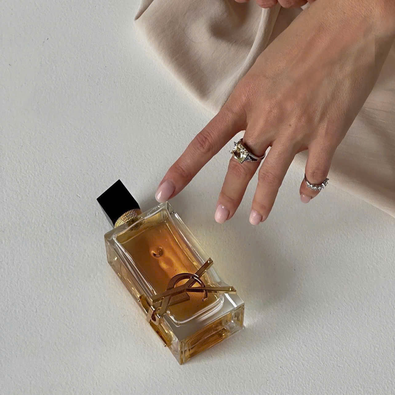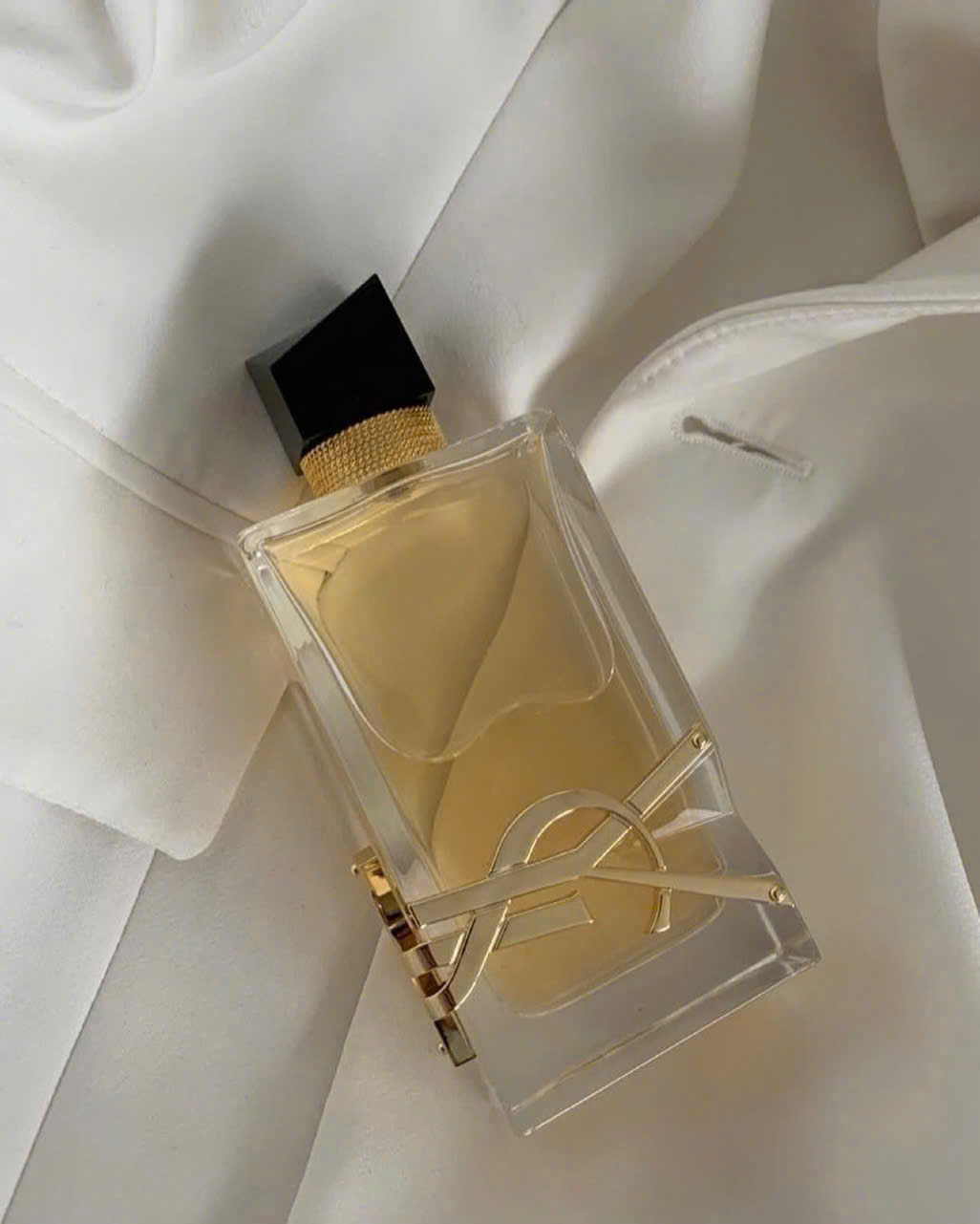 Một chai góc nhọn thời trang cao cấp được xoắn lại bằng một phụ kiện quá khổ sang trọng. Biểu tượng Cassandre mang tính biểu tượng được uốn cong và đóng đinh tự do vào thủy tinh như một viên ngọc. Những sợi xích vàng gợi cảm và nắp sơn mài đen không đối xứng phủ lên trên. Hương thơm của sự tự do.